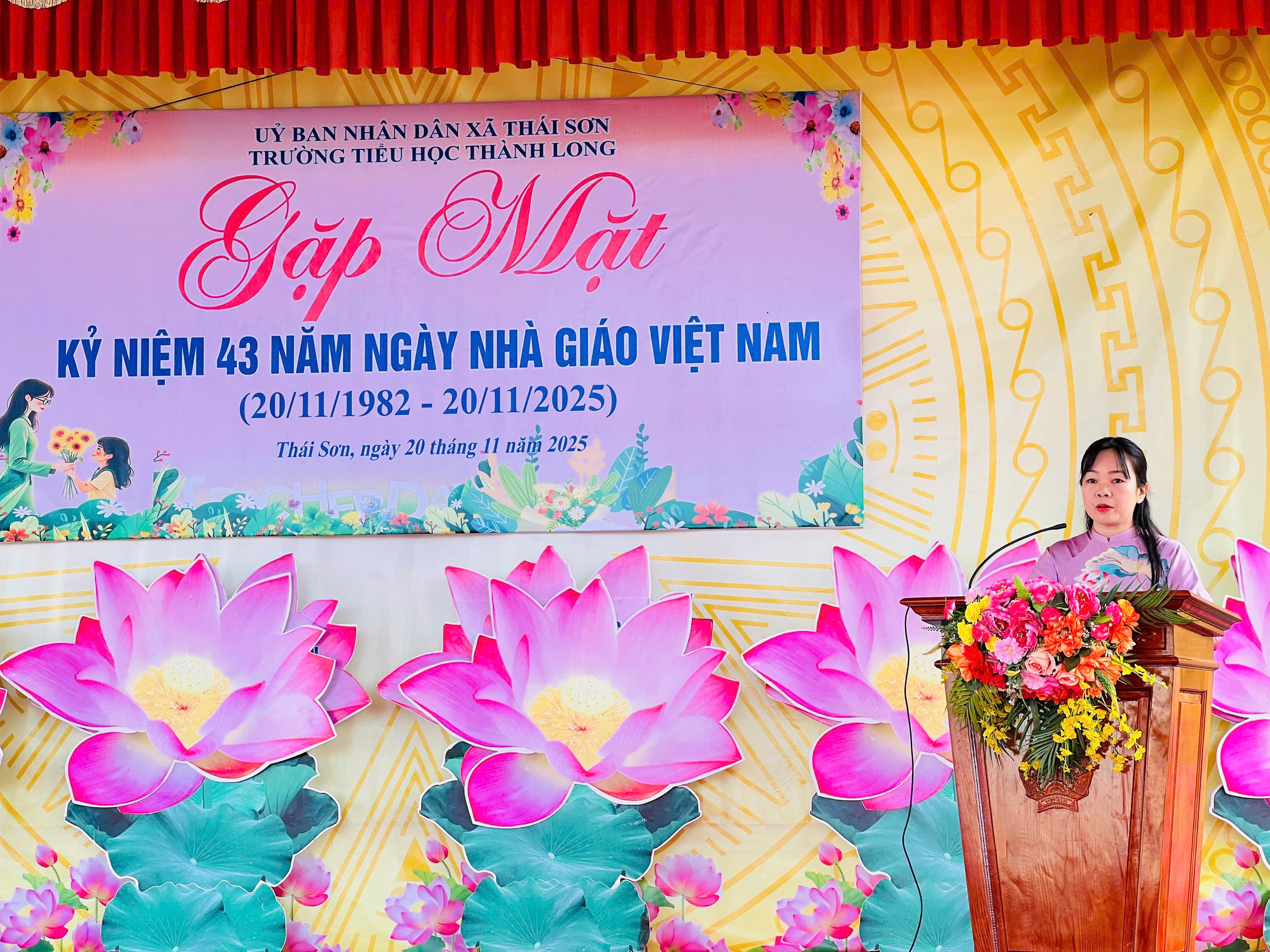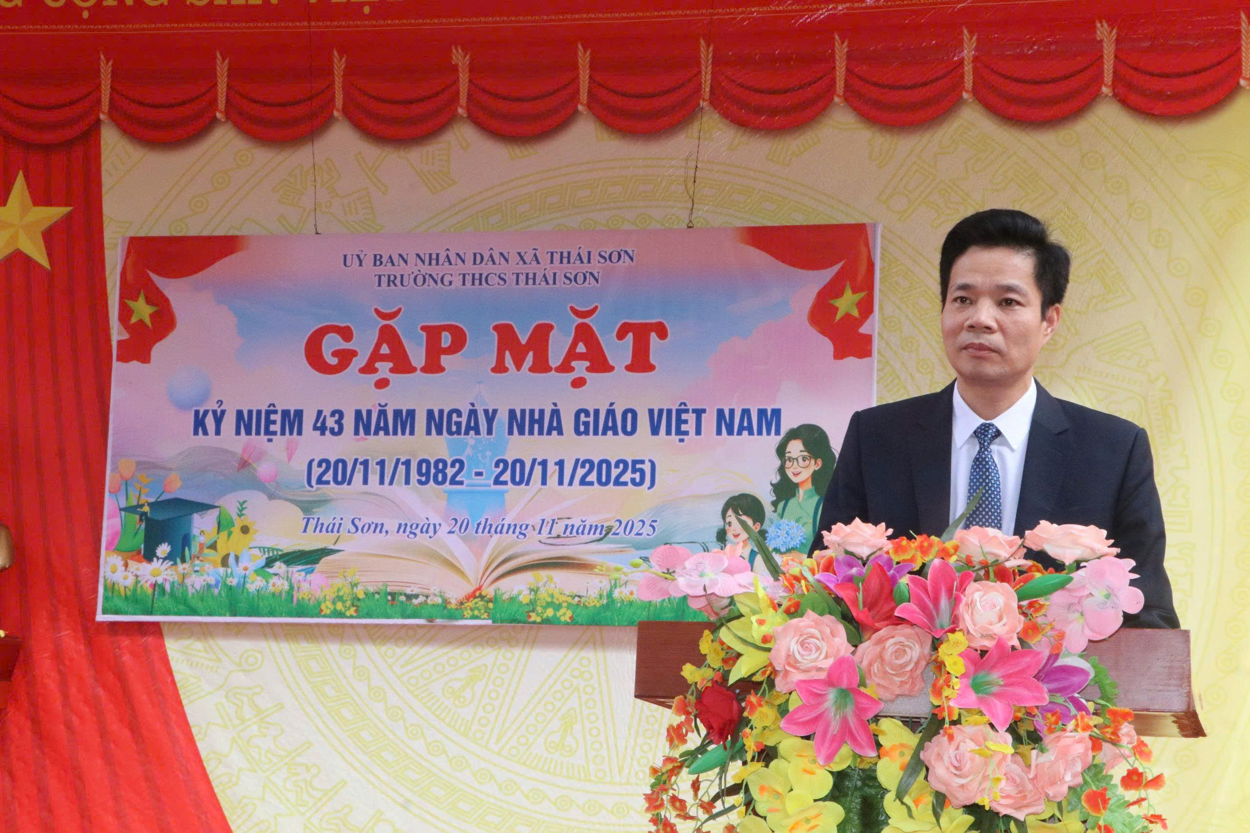 Nhân kỷ niệm Ngày Nhà giáo Việt Nam (20/11/1982 – 20/11/2025), sáng ngày 20/11, các đồng chí lãnh đạo Đảng ủy, HĐND, UBND xã Thái Sơn đã đến dự và chúc mừng đội ngũ cán bộ, giáo viên tại các trường học trên địa bàn xã. Đây là hoạt động thường niên nhằm tri ân, tôn vinh những đóng góp to lớn của các thầy giáo, cô giáo đối với sự nghiệp trồng người. Tại buổi gặp mặt, đại diện lãnh đạo xã đã gửi lời chúc mừng tốt đẹp nhất đến toàn thể đội ngũ nhà giáo nhân ngày lễ truyền thống của ngành. Các đồng chí đánh giá cao những nỗ lực của các nhà trường trong thời gian qua, đặc biệt là tinh thần đoàn kết, trách nhiệm của đội ngũ cán bộ, giáo viên trong việc đổi mới phương pháp dạy học, nâng cao chất lượng giáo dục và chăm lo rèn luyện đạo đức, kỹ năng cho học sinh. Phát biểu tại buổi gặp mặt, lãnh đạo xã Thái Sơn khẳng định: giáo dục luôn là lĩnh vực được Đảng ủy và chính quyền địa phương quan tâm hàng đầu. Xã đã và đang tập trung huy động nhiều nguồn lực để đầu tư cơ sở vật chất trường lớp, hỗ trợ hoạt động dạy và học, tạo môi trường thuận lợi để các thầy cô yên tâm công tác, cống hiến cho sự nghiệp giáo dục.
