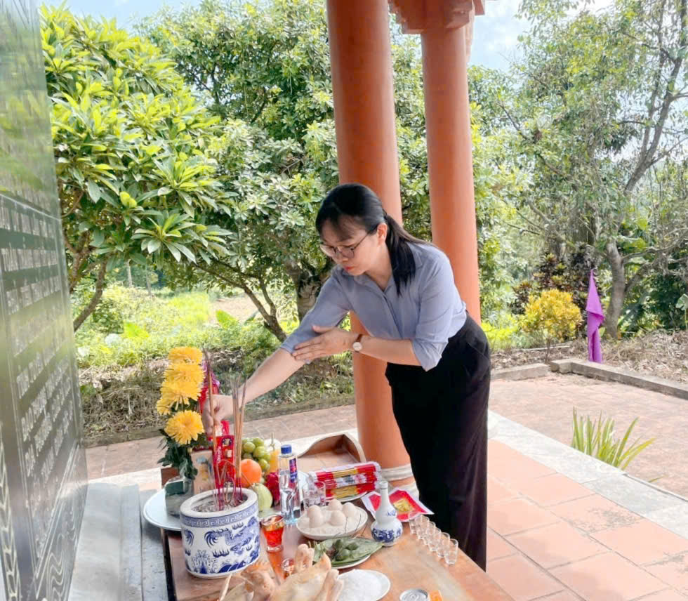 Đồng chí Nhữ Thị Tuyết Thanh, Bí thư Đảng ủy xã dâng hương tại Phủ Toàn Thắng