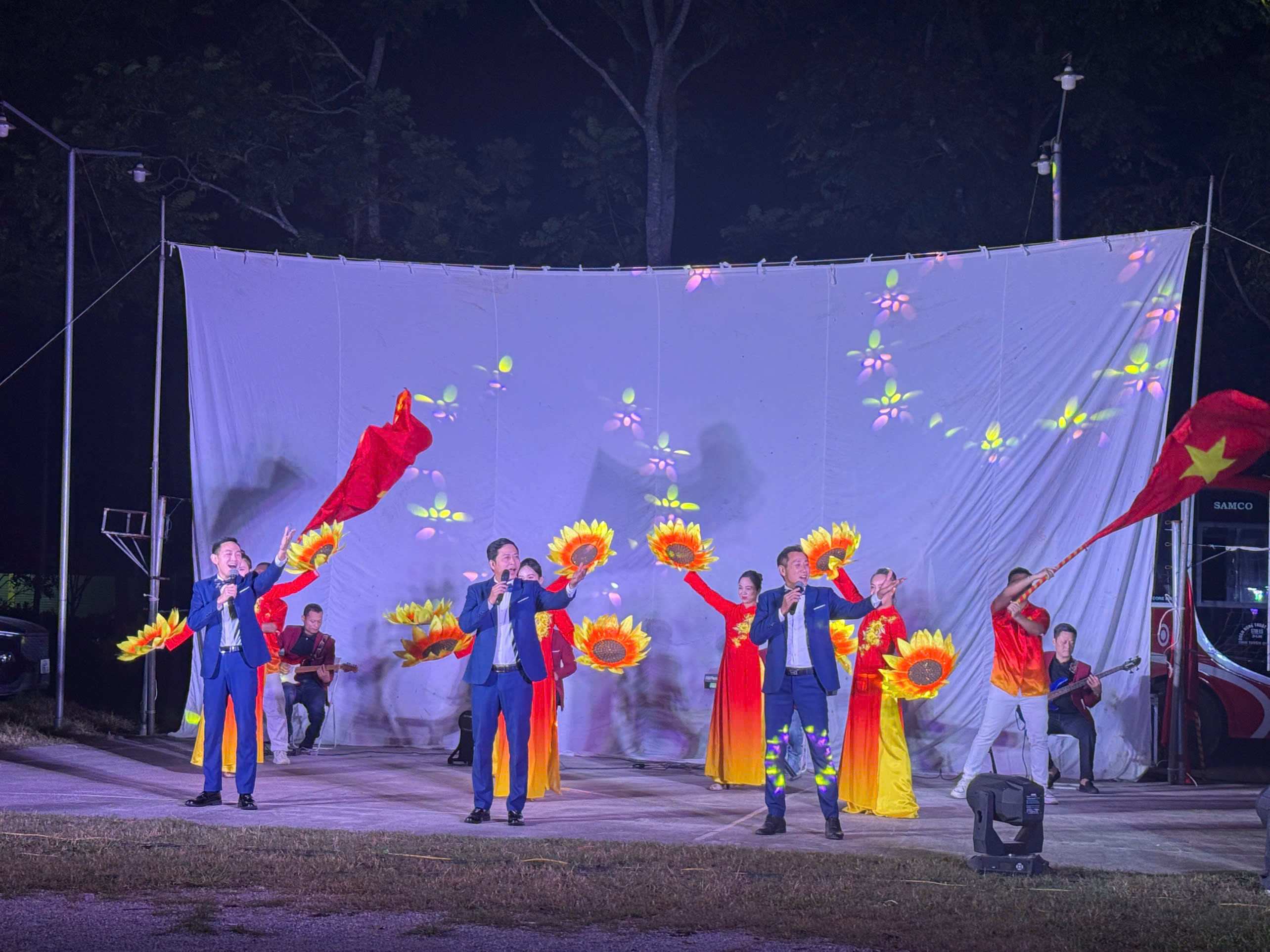 Các nghệ sĩ của Đoàn đã cống hiến nhiều tiết mục đậm bản sắc, được dàn dựng công phu. Đặc biệt, chương trình còn có sự tham gia của những hạt nhân văn nghệ cơ sở, tạo nên bầu không khí vui tươi, sôi nổi và đầy tự hào. Một buổi tối thật ý nghĩa, gắn kết cộng đồng và lan tỏa tinh thần phấn khởi hướng về các sự kiện chính trị quan trọng của tỉnh và của Đảng.