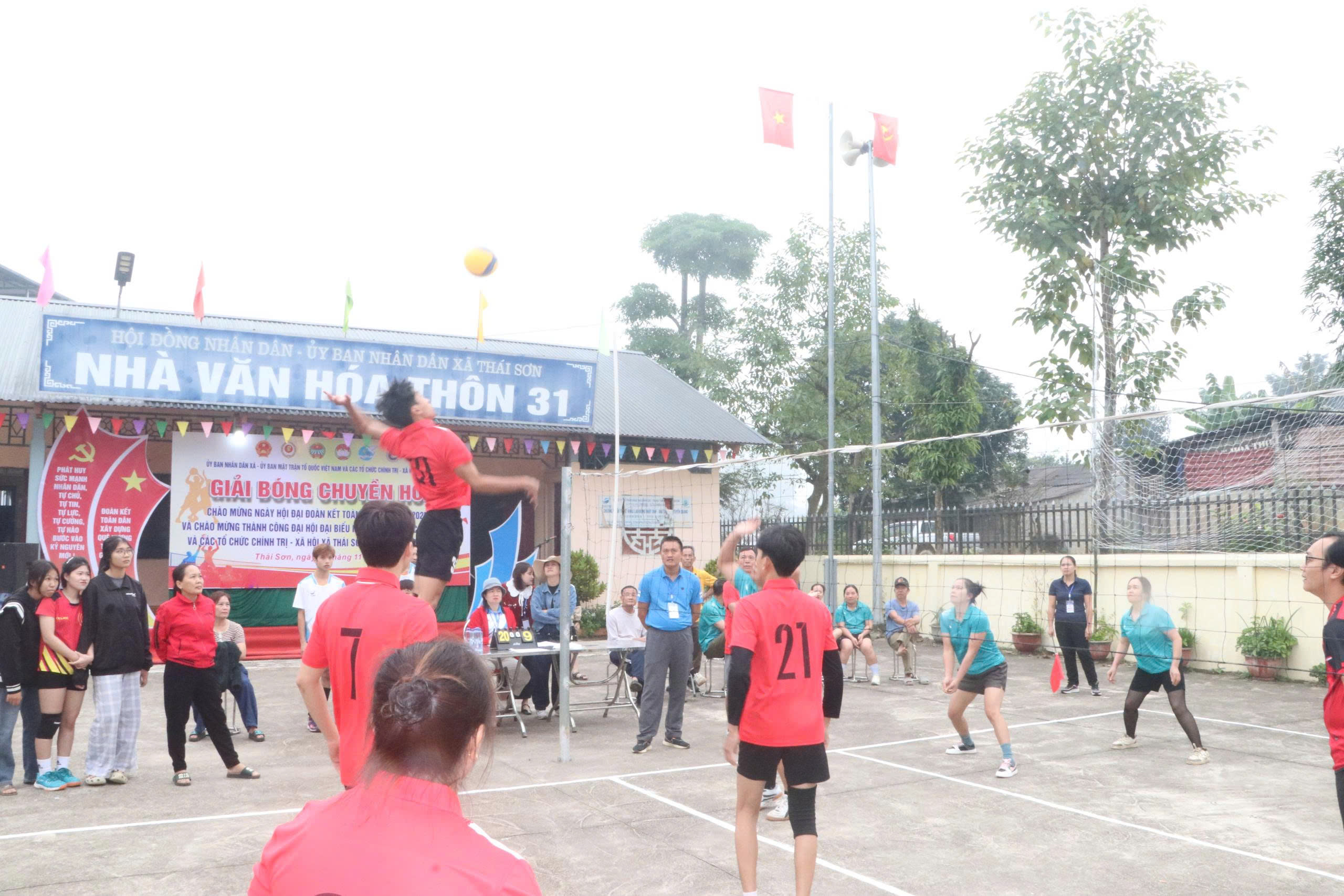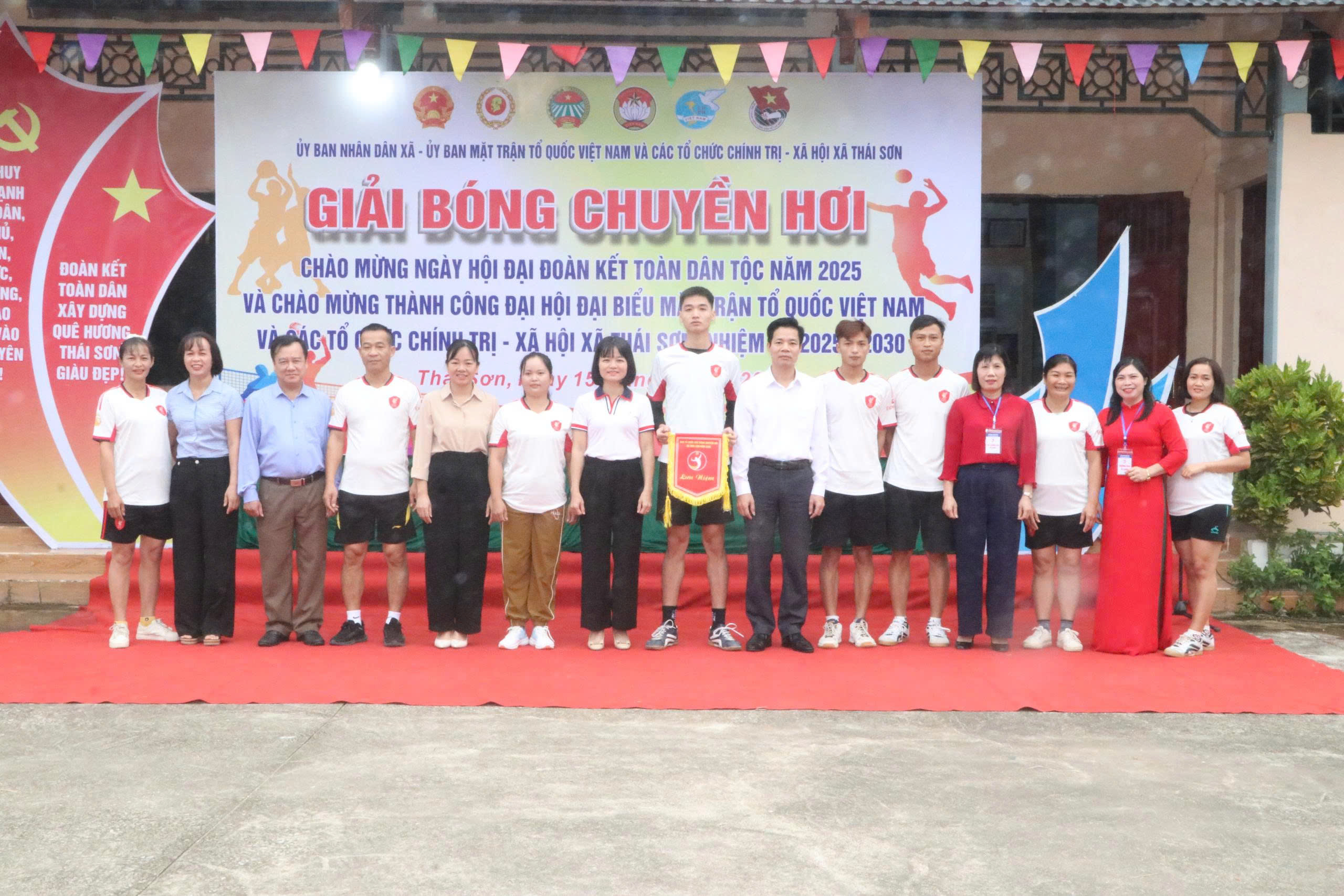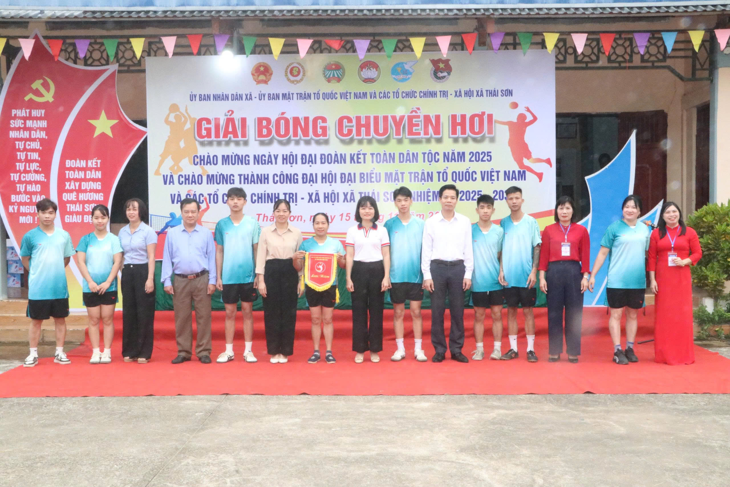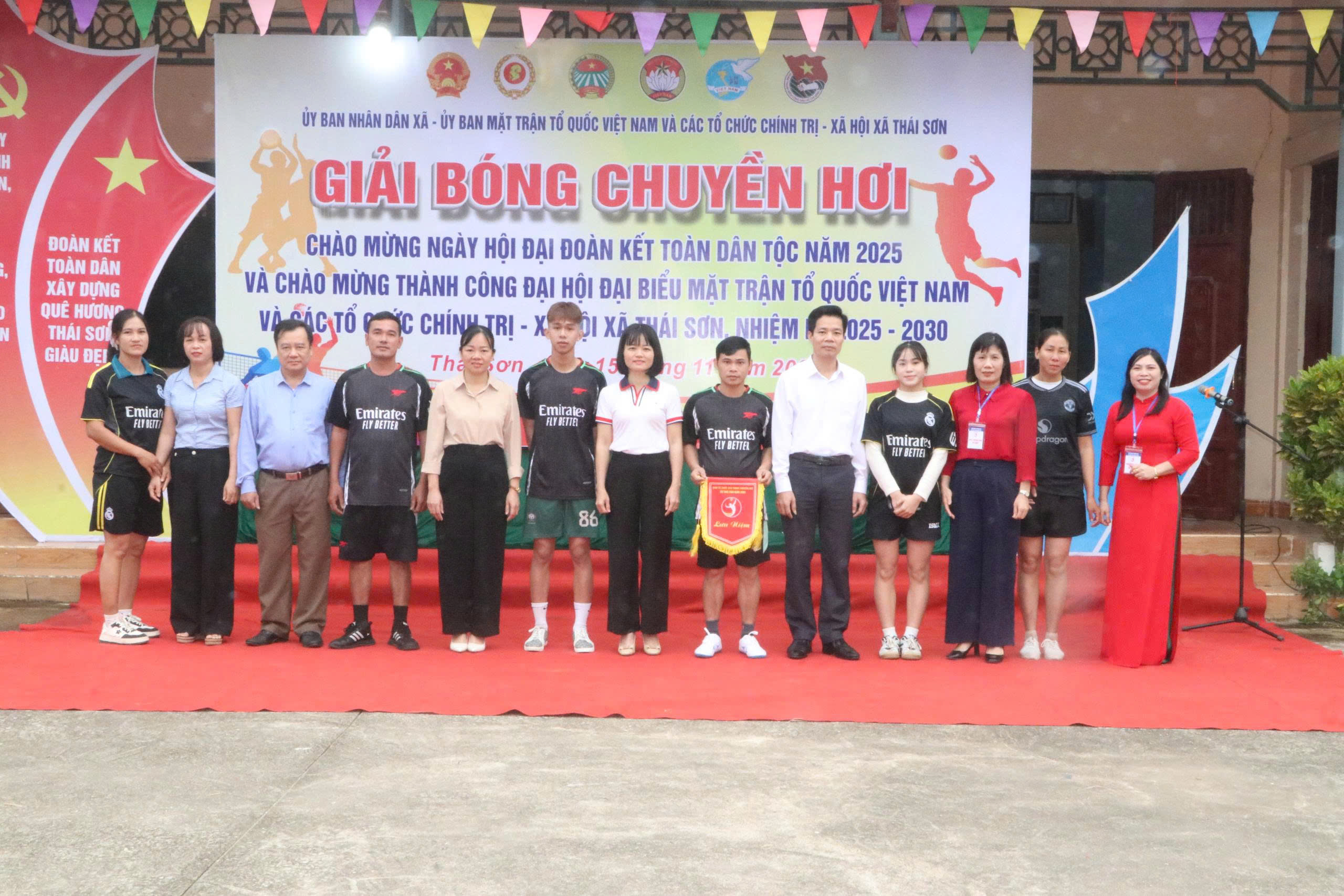 Ngày 15/11, xã Thái Sơn tổ chức giải bóng chuyền hơi chào mừng Ngày hội Đại đoàn kết toàn dân tộc năm 2025 và chào mừng thành công Đại hội đại biểu MTTQ Việt Nam, các tổ chức chính trị – xã hội xã Thái Sơn, nhiệm kỳ 2025 – 2030. Tới dự và động viên giải đấu có các đồng chí: Nhữ Thị Tuyết Thanh, Bí thư Đảng ủy xã; Phùng Thị Tuyết Mai, Phó Bí thư Thường trực Đảng ủy, Chủ tịch HĐND xã; Nguyễn Việt Phương, Phó Bí thư Đảng ủy, Chủ tịch UBND xã.