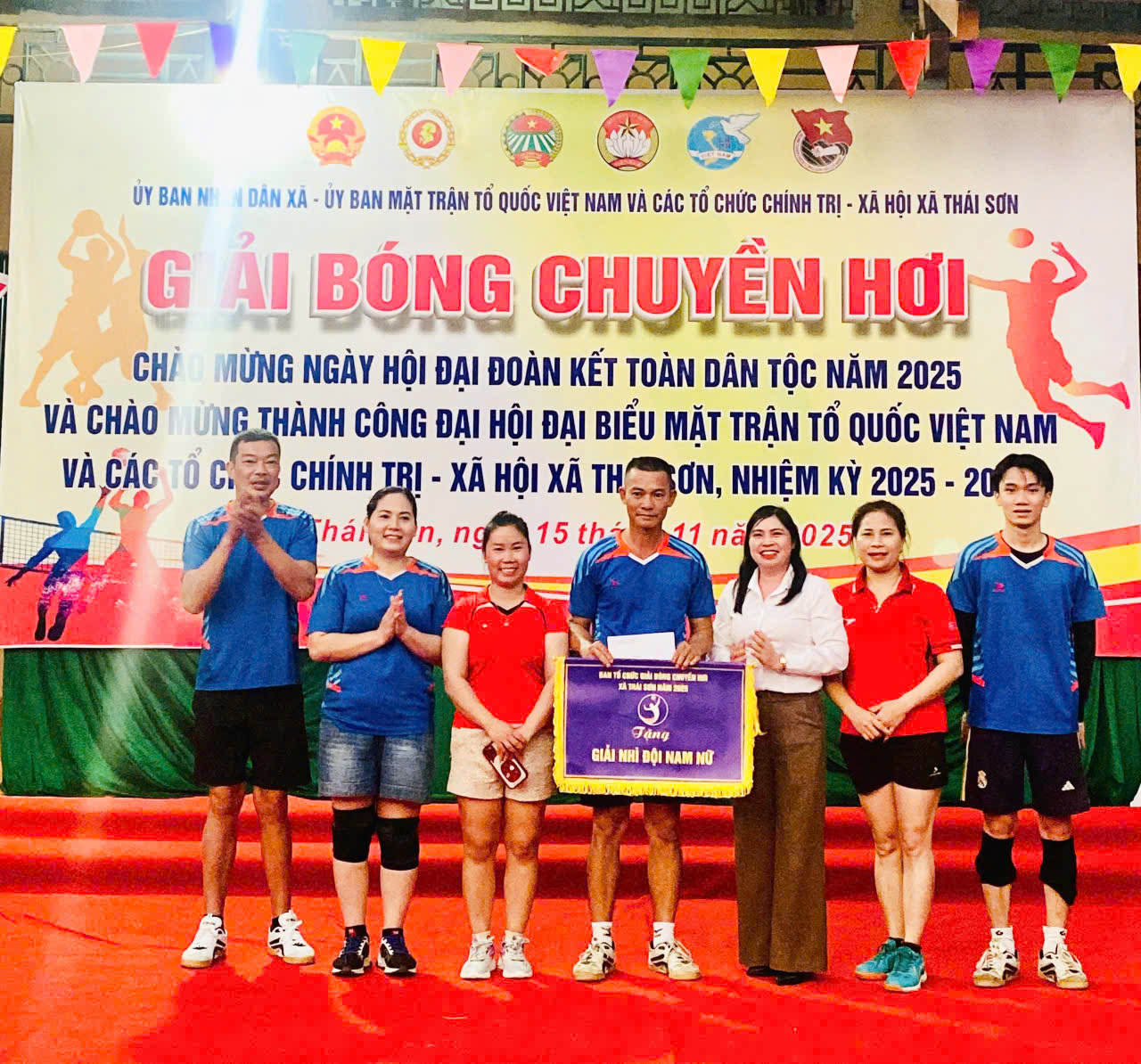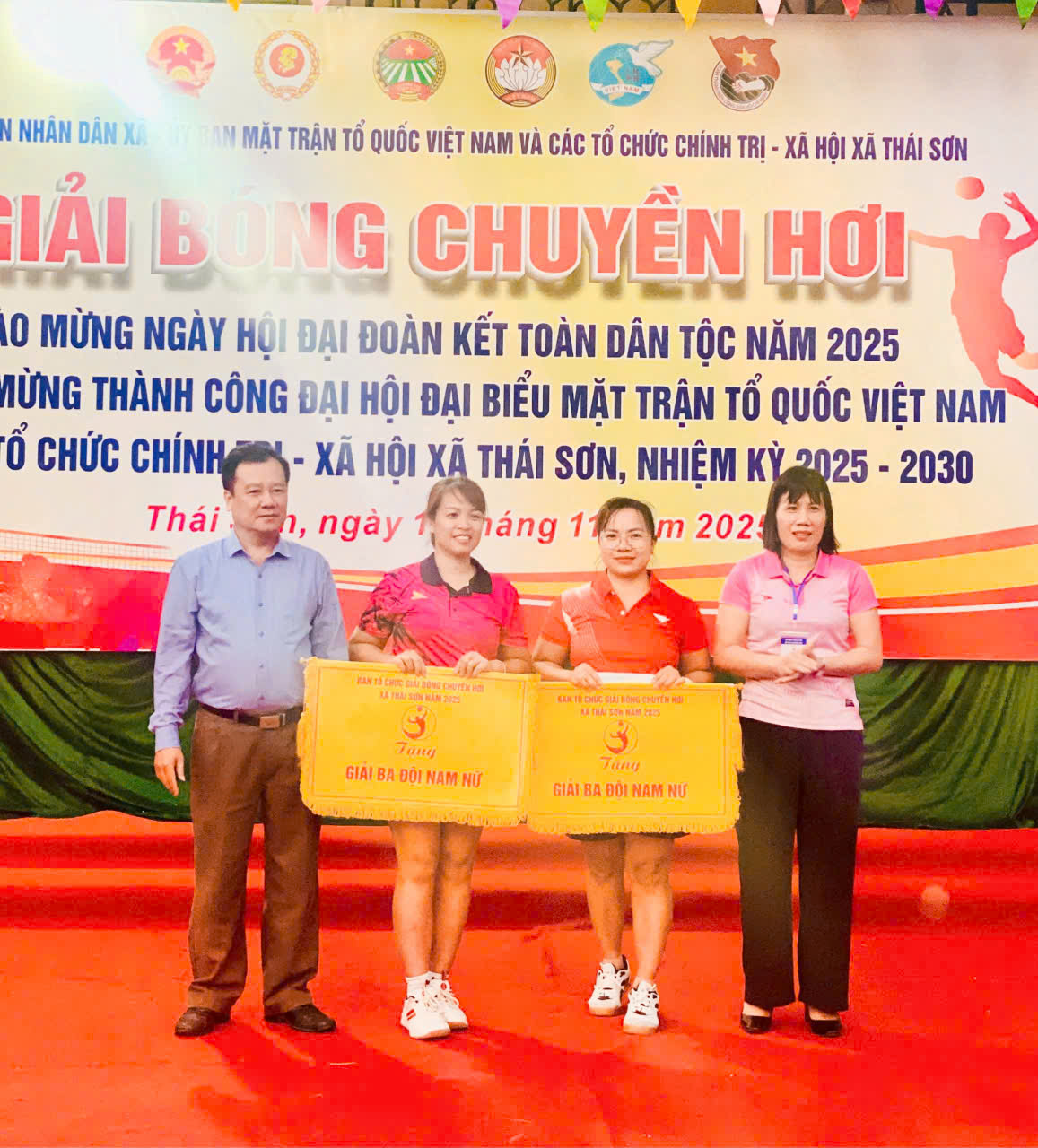 Giải đấu năm nay đã diễn ra trong không khí sôi nổi và hấp dẫn, thu hút sự tham gia của 15 đội bóng đến từ các thôn trên địa bàn xã. Các trận đấu diễn ra hết sức kịch tính và quyết liệt, mang đến không khí vui tươi, đoàn kết và tạo nên dấu ấn sâu sắc trong lòng khán giả. Những pha bóng đẹp mắt và tinh thần thể thao cao thượng đã làm tăng thêm sự gắn kết cộng đồng, khẳng định sự phát triển mạnh mẽ của phong trào thể dục thể thao xã nhà. Kết thúc giải đấu Ban tổ chức trao: 01 giải Nhất đội bóng thôn Thái Ninh; 01 giải Nhì đội bóng thôn 2 Thái Bình, 02 giải Ba đội bóng thôn 3 Thái Bình, thôn 4 Thái Bình và 11 giải khuyến khích cho các đội đạt thành tích cao. Giải bóng chuyền hơi không chỉ là dịp để các thôn giao lưu, học hỏi, mà còn là cơ hội để thắt chặt thêm tình đoàn kết, tinh thần cộng đồng, góp phần nâng cao đời sống tinh thần của nhân dân trong xã. Xin chúc mừng các đội đạt giải và hy vọng rằng các phong trào thể dục thể thao như thế này sẽ ngày càng phát triển, đem lại nhiều hoạt động ý nghĩa cho xã Thái Sơn trong những năm tiếp theo.