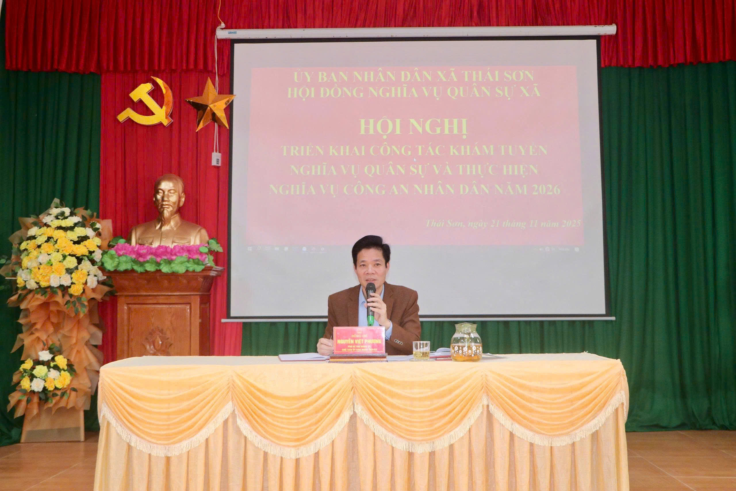 Phát biểu chỉ đạo tại hội nghị, đồng chí Nguyễn Việt Phương, Chủ tịch UBND xã Thái Sơn khẳng định: Công tác khám tuyển nghĩa vụ quân sự và tuyển chọn công dân thực hiện nghĩa vụ Công an nhân dân là nhiệm vụ chính trị quan trọng, góp phần củng cố quốc phòng – an ninh, xây dựng và bảo vệ Tổ quốc. Do đó, các đơn vị, đoàn thể và các thôn cần nâng cao tinh thần trách nhiệm, thực hiện nghiêm túc quy trình tuyển chọn; bảo đảm tính công khai, minh bạch, khách quan; đồng thời tăng cường công tác tuyên truyền để thanh niên trong độ tuổi có ý thức, trách nhiệm đối với nghĩa vụ thiêng liêng của mình.