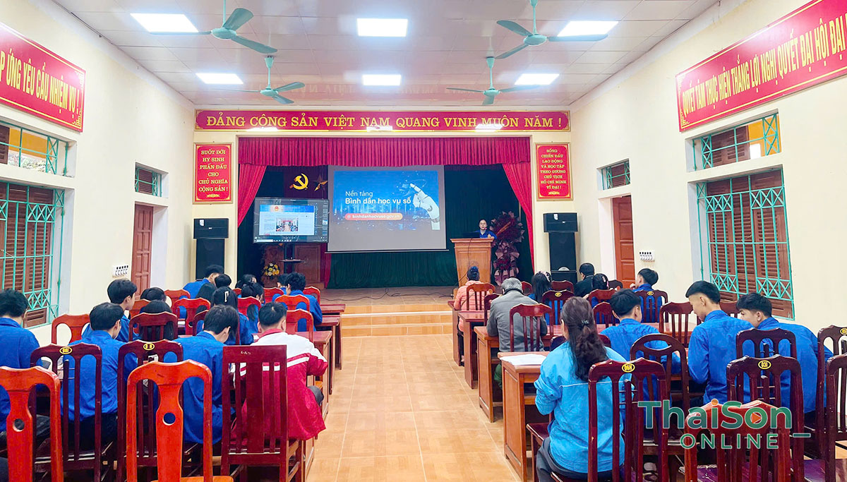 Trung tâm Học tập cộng đồng xã Thái Sơn tổ chức hướng dân người tham gia học “ Bình dân học vụ số”